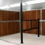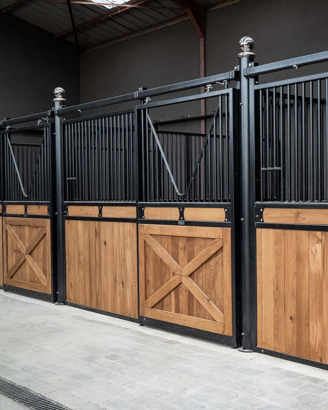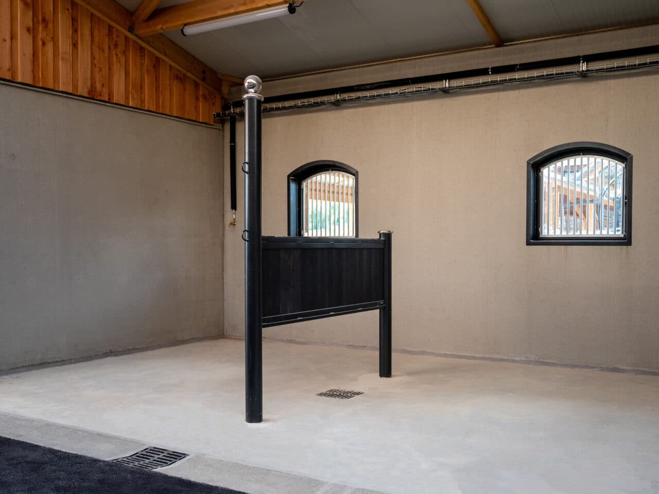 Alliant sécurité et aménagement fonctionnel, la cloison de pansage permet de délimiter clairement les zones dédiées aux soins des chevaux. Idéale pour les salles de pansage, douches ou espaces de maréchalerie, elle facilite la circulation tout en réduisant les mouvements accidentels.