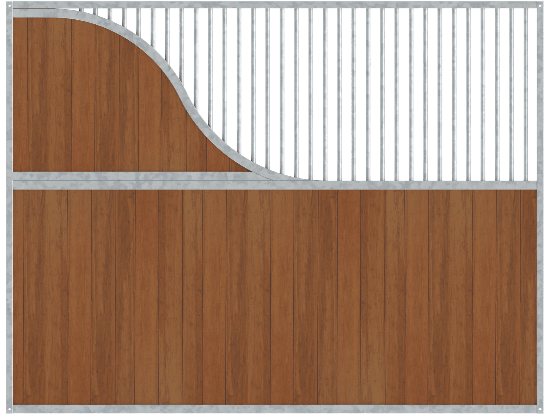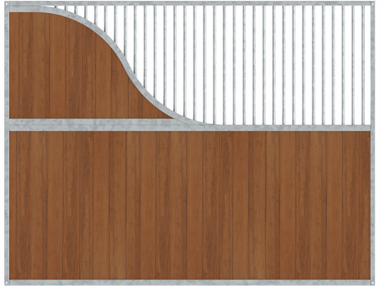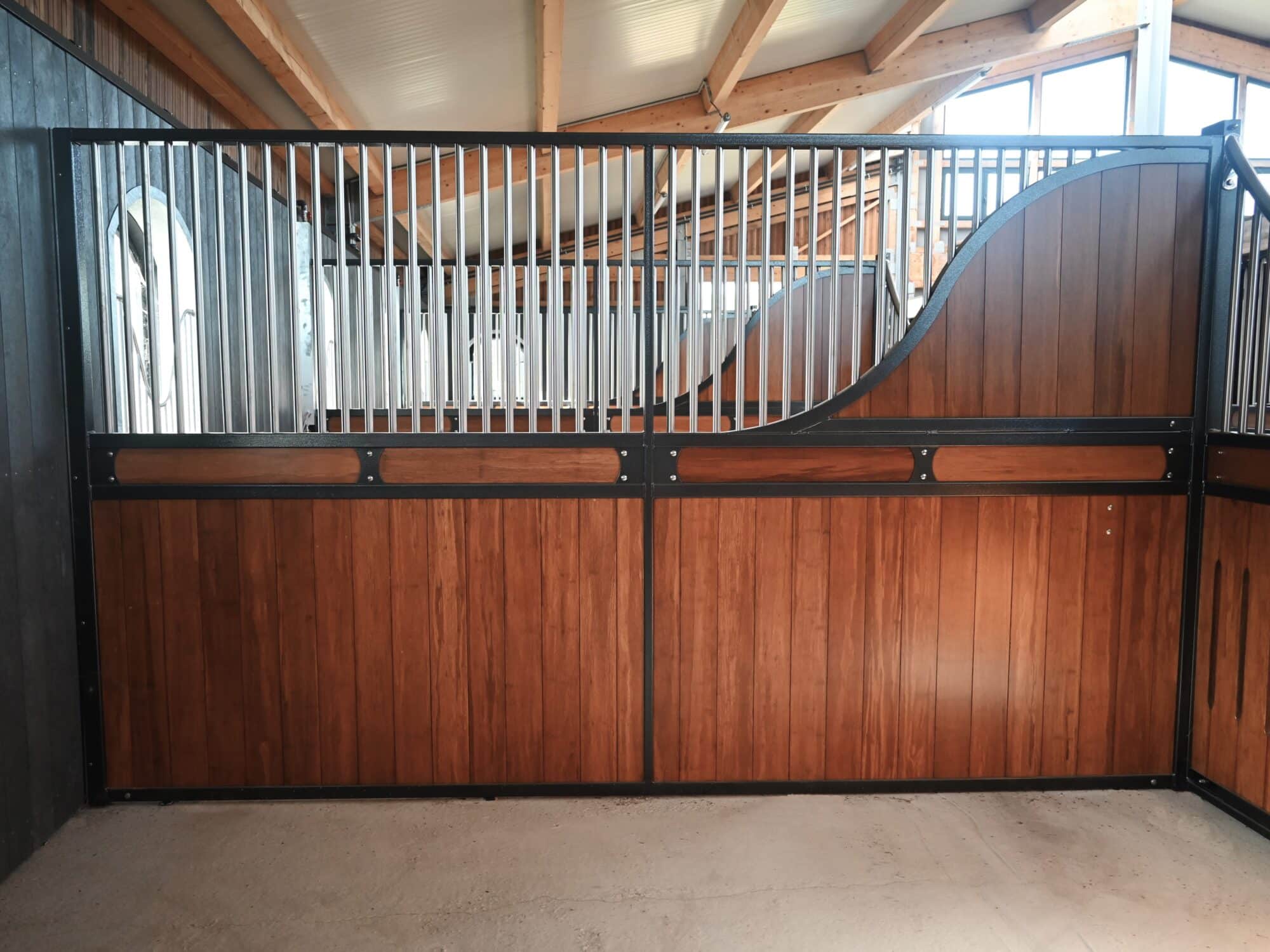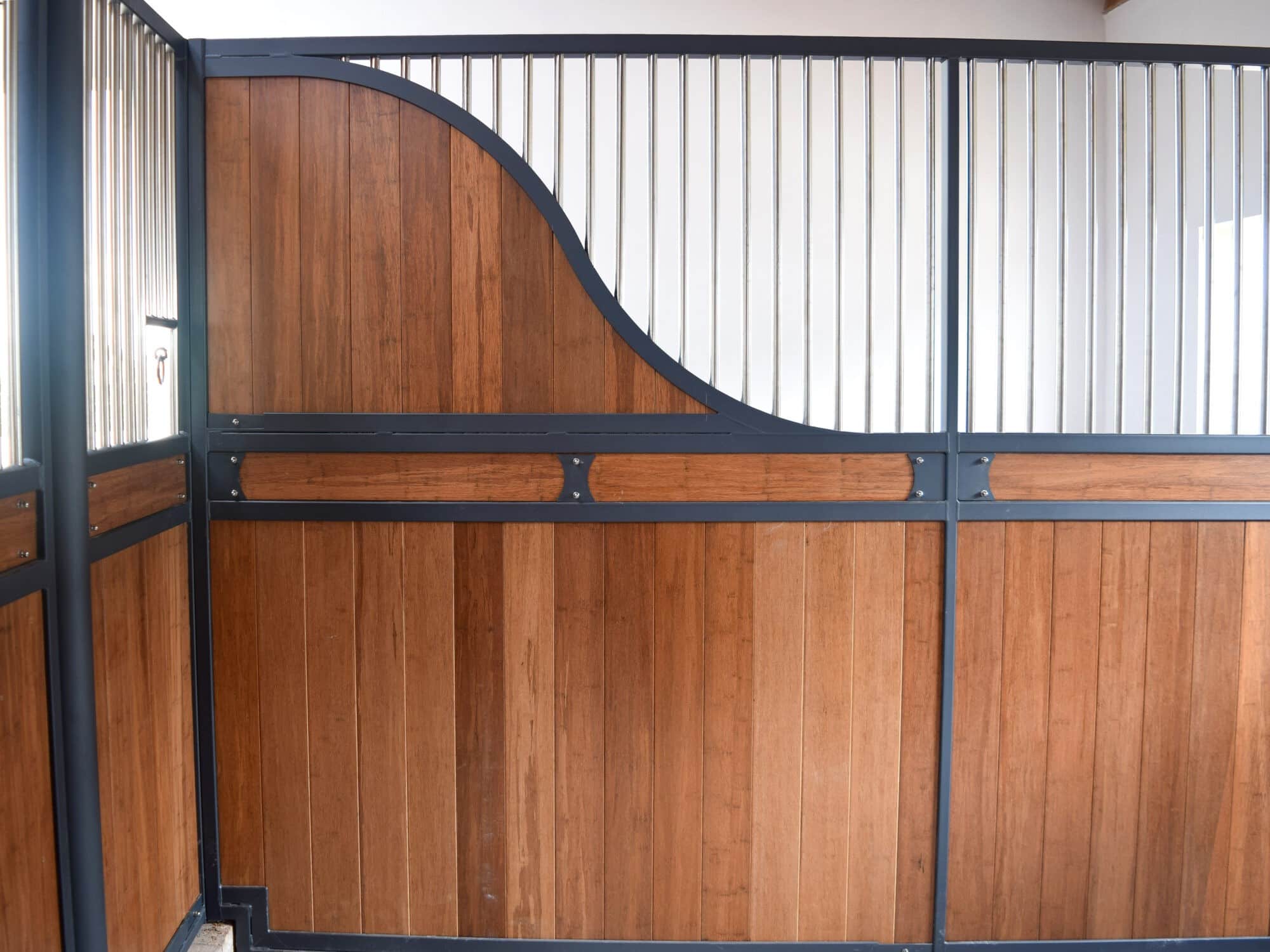 Alliant sécurité et contact visuel, la cloison semi-fermée à profilé galbé constitue une solution intermédiaire idéale pour l’aménagement des boxes. Sa ligne courbée offre une esthétique plus douce et raffinée que le modèle à profilé droit, tout en s’adaptant à tous les styles d’écuries.