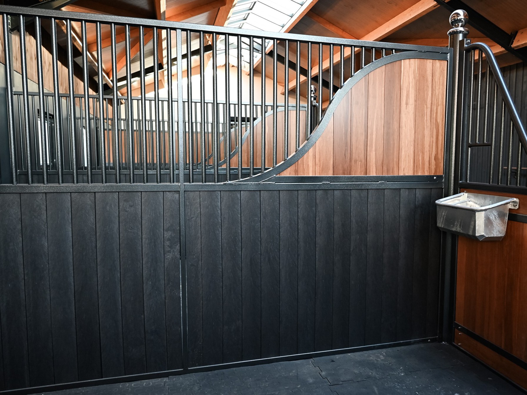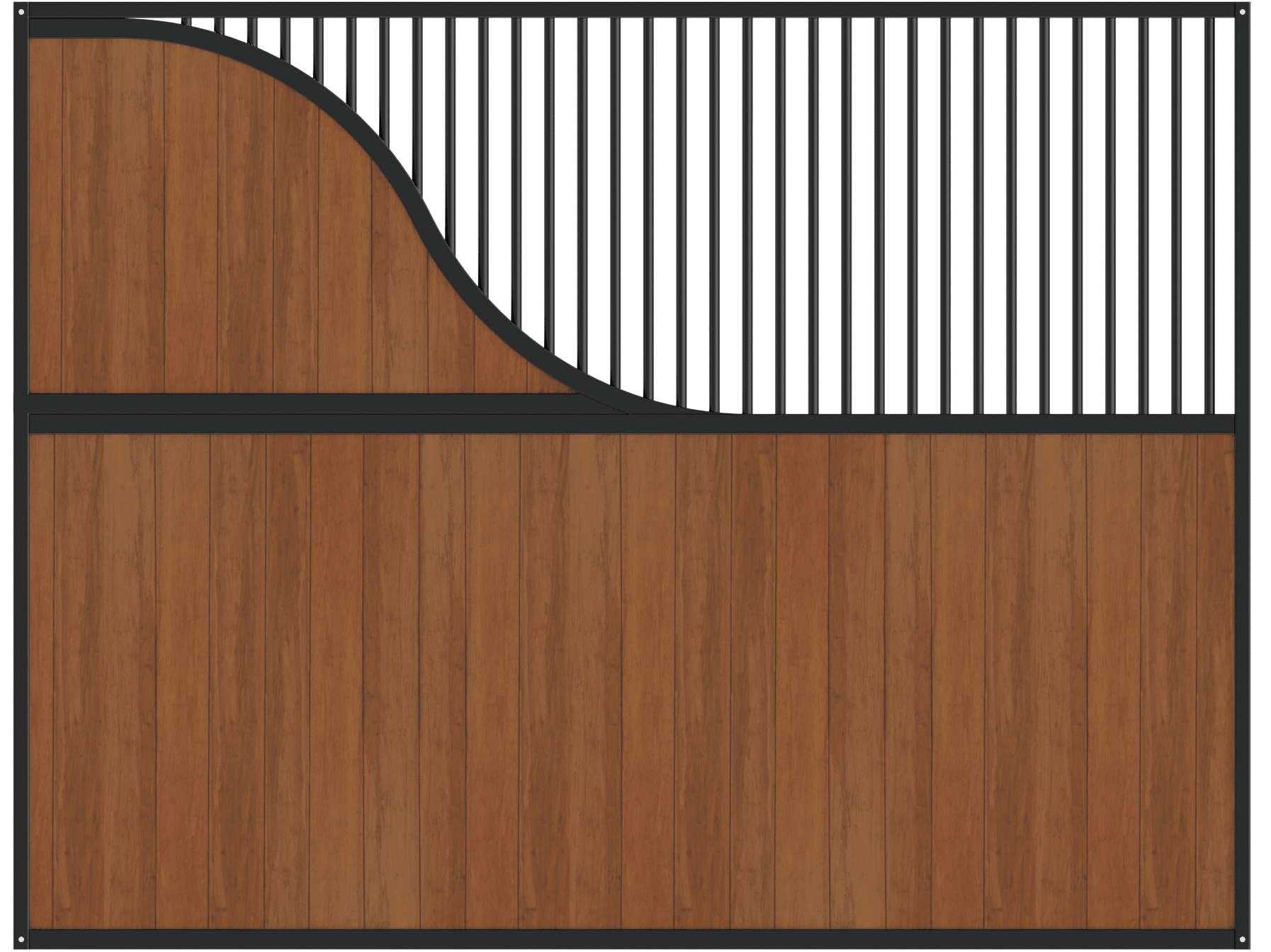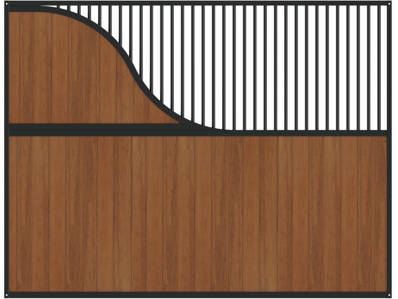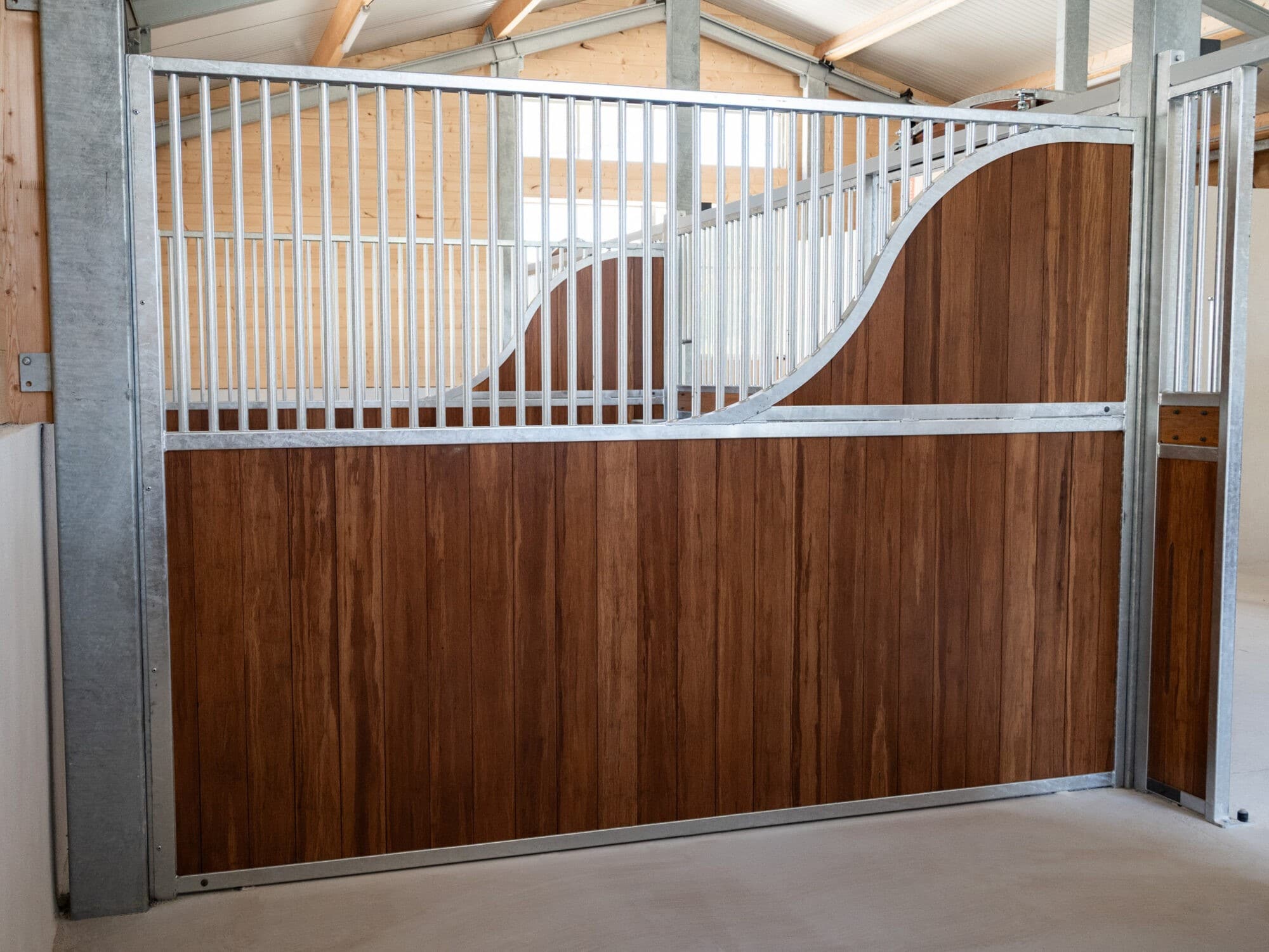 Alliant sécurité et contact visuel, la cloison semi-fermée à profilé galbé constitue une solution intermédiaire idéale pour l’aménagement des boxes. Sa ligne courbée offre une esthétique plus douce et raffinée que le modèle à profilé droit, tout en s’adaptant à tous les styles d’écuries.