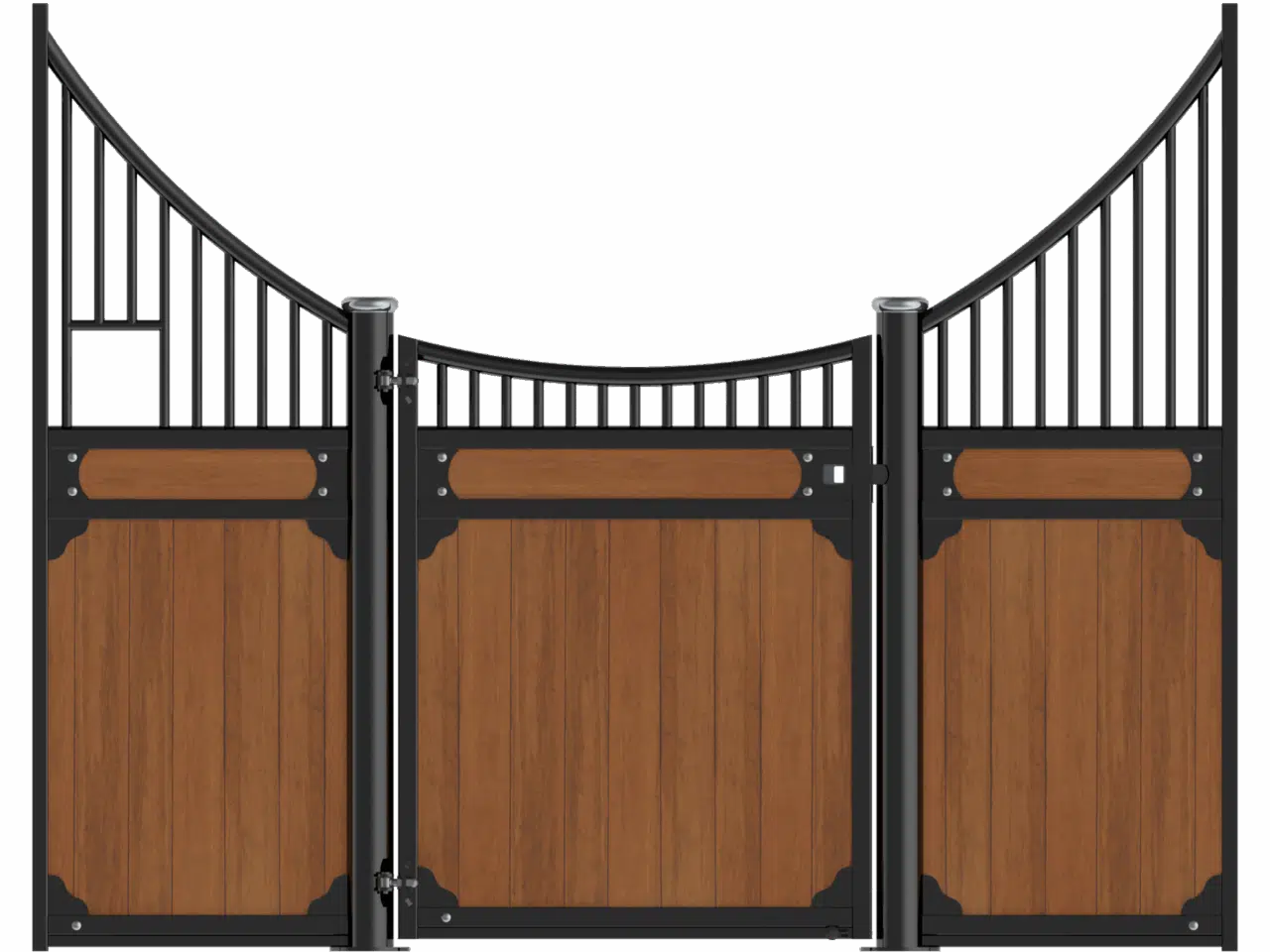 Sa ligne arrondie apporte une touche d’élégance tout en offrant une belle ouverture visuelle sur l’allée. Grâce à ses finitions soignées, son double système de verrouillage et sa fabrication sur-mesure, elle s’adapte à toutes les configurations d’écurie.