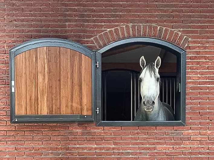La fenêtre de box pleine, aussi appelée volet de box contribue à apporter luminosité et ventilation dans vos installations, tout en offrant une continuité esthétique avec l’ensemble de l’écurie.