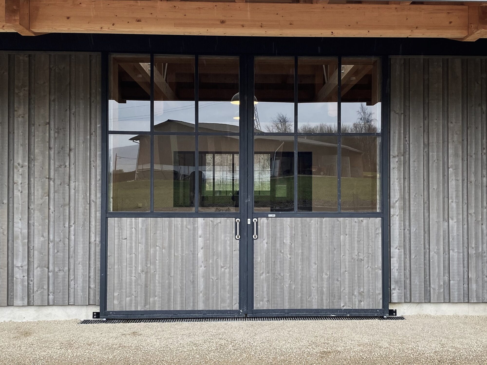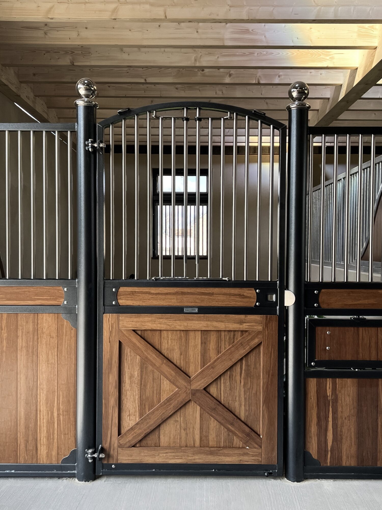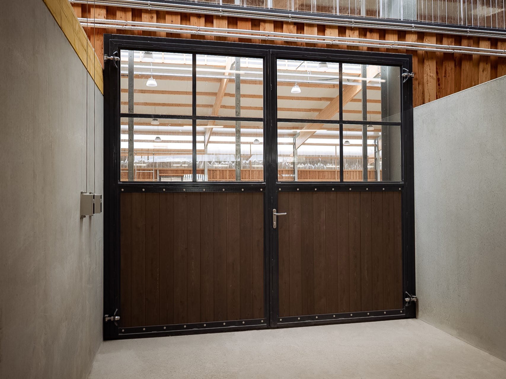 Fabriquée sur-mesure et dotée de finitions soignées, cette porte d’écurie conjugue élégance, robustesse et gain de place pour un aménagement fonctionnel de votre écurie.