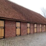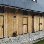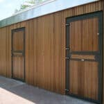 Alliant sécurité et fonctionnalité, la porte de box pleine à deux battants constitue une solution idéale pour les boxes donnant sur l’extérieur. Entièrement bardée de planches en partie haute comme en partie basse, elle empêche les contacts directs et crée un environnement sécurisé pour le cheval.