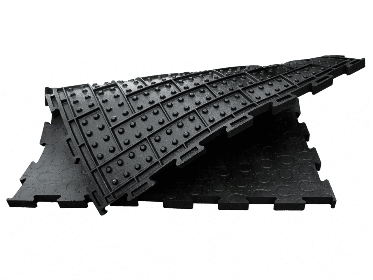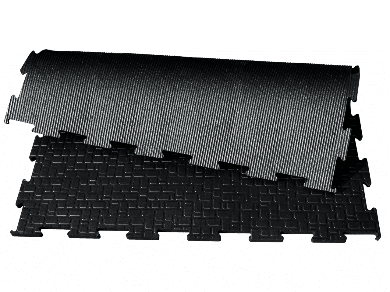 Fabriqués à base de caoutchouc recyclé, ils réduisent la consommation de litière, amortissent les appuis et limitent les chocs sur les articulations. Leur composition résiste à l’usure et à l’urine, tout en apportant une excellente isolation thermique et phonique.