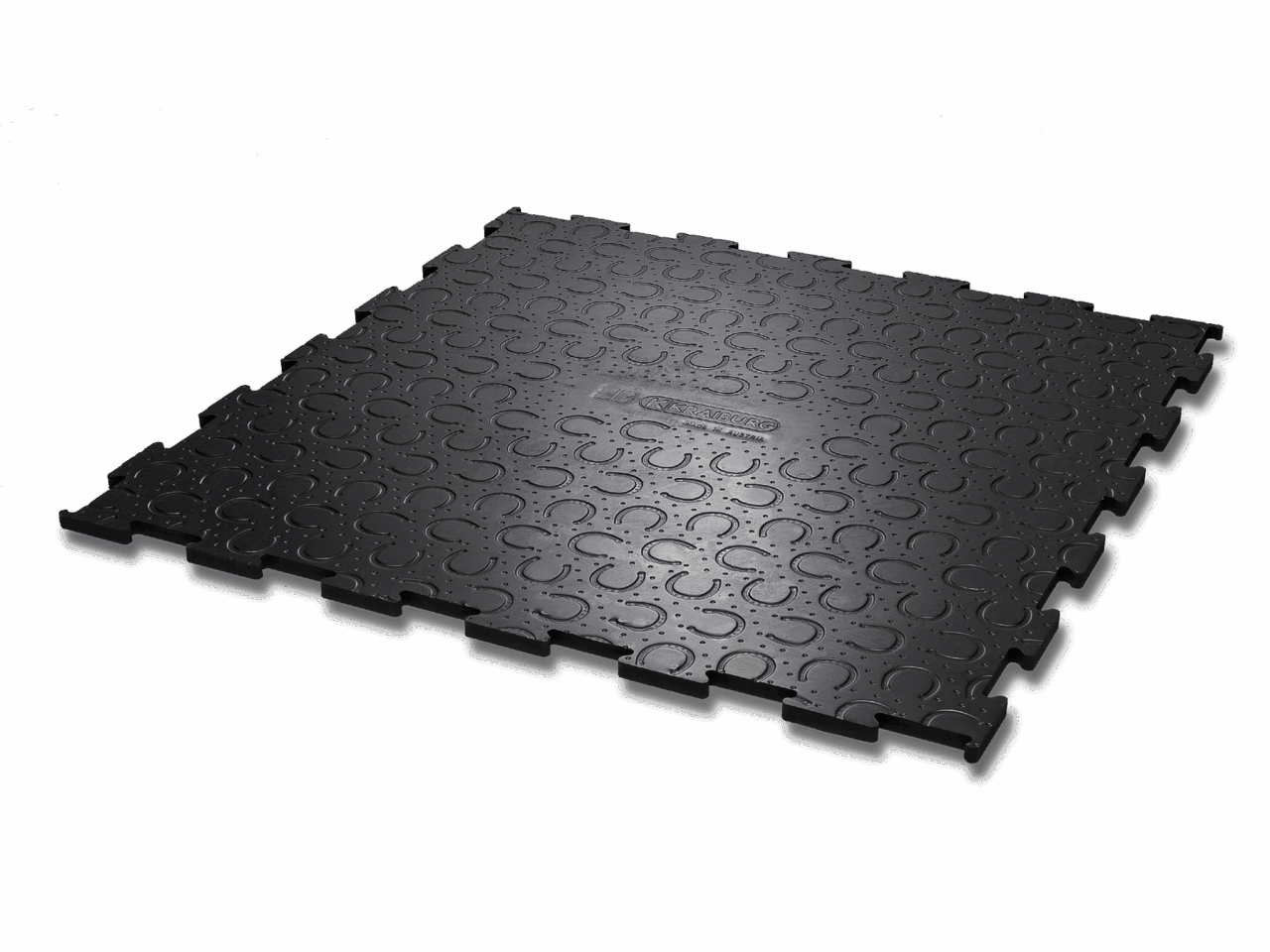 Conçus pour améliorer le bien-être des chevaux et faciliter l’entretien quotidien, nos tapis en caoutchouc offrent une surface antidérapante, isolante et confortable. Le système d’emboîtement type puzzle assure une pose stable et uniforme, parfaitement adaptée aux boxes, salles de pansage, allées ou zones de soin.