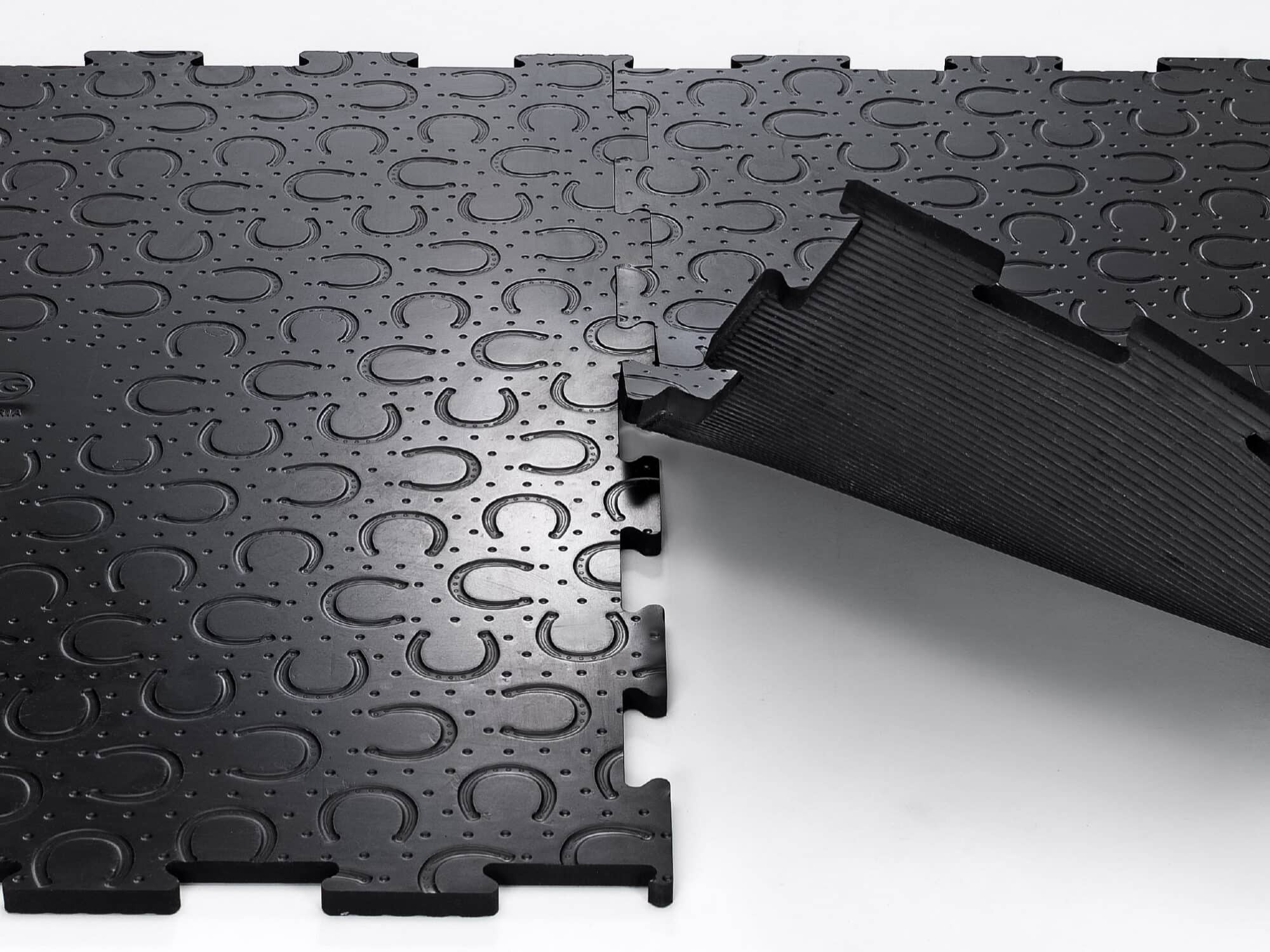 Conçus pour améliorer le bien-être des chevaux et faciliter l’entretien quotidien, nos tapis en caoutchouc offrent une surface antidérapante, isolante et confortable. Le système d’emboîtement type puzzle assure une pose stable et uniforme, parfaitement adaptée aux boxes, salles de pansage, allées ou zones de soin.