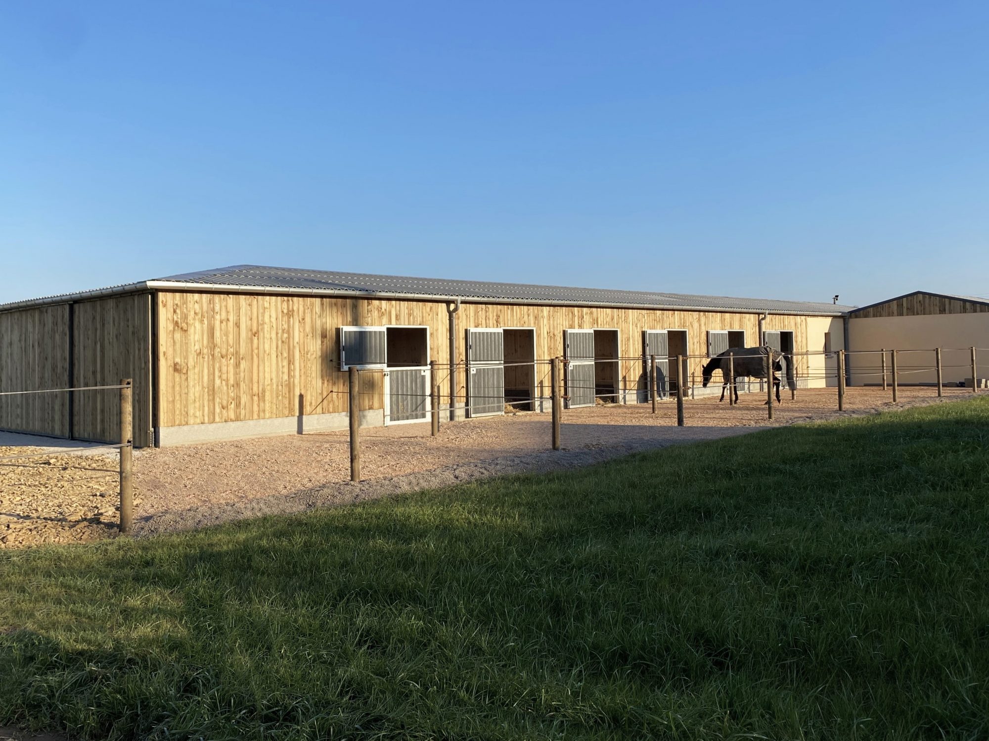 Au sein de l’élevage, une écurie de propriétaires a été aménagée, offrant 6 boxes terrasse équipés de portes des deux côtés pour plus de praticité.