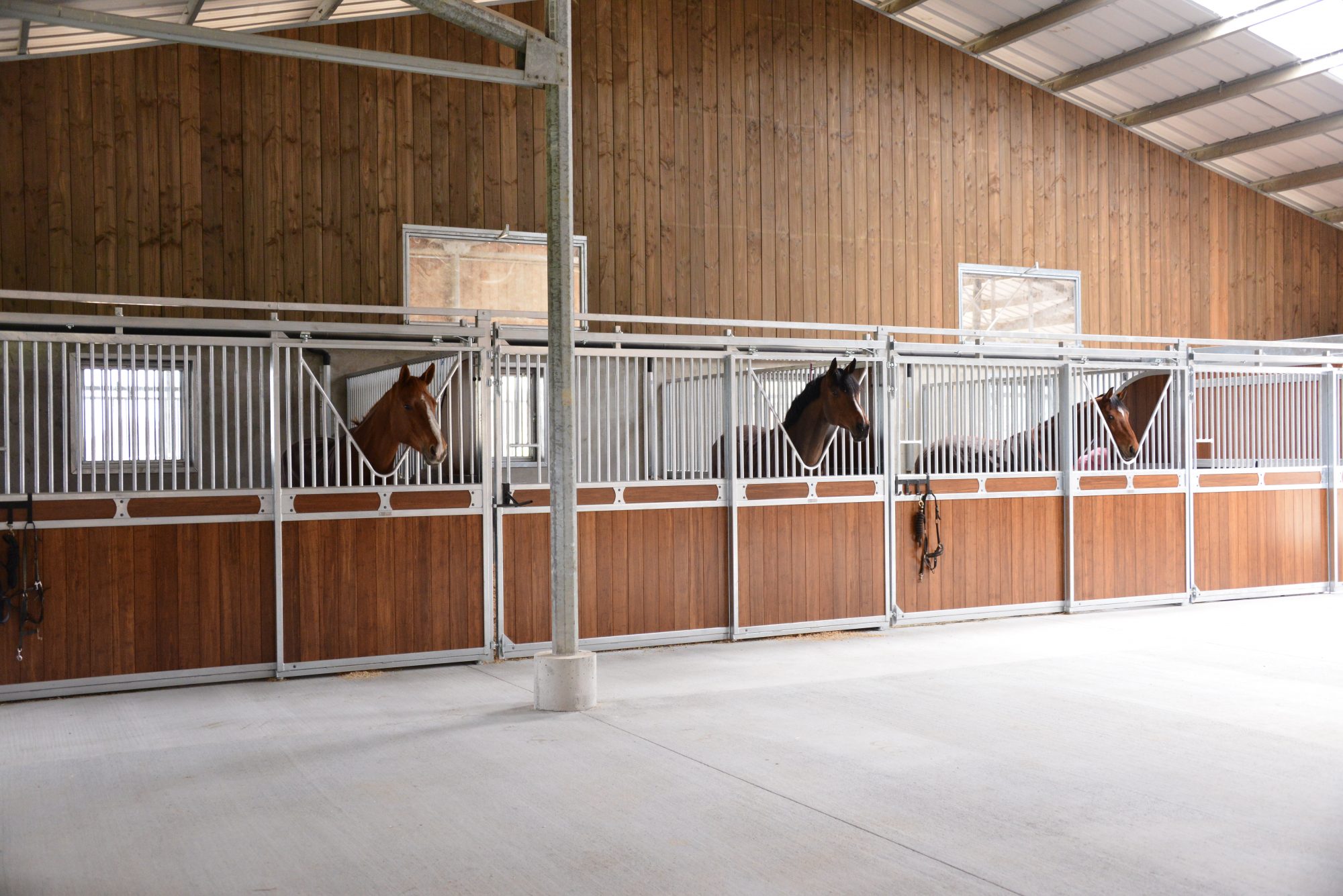 Cette écurie aménagée par nos soins se compose de 9 boxes de 3,5 x 4 m équipés avec le modèle coulissant Professional Serie.
